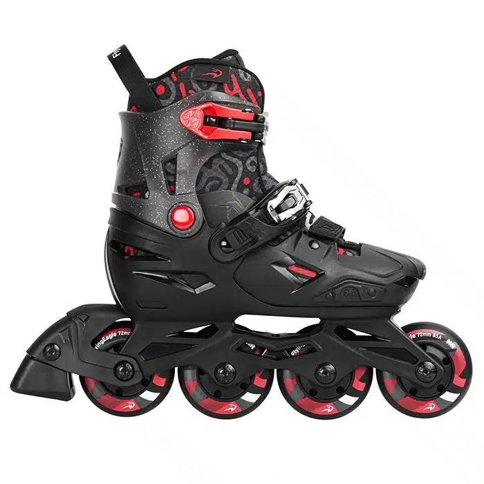 Flying Eagle S3s Cosmo Black — это обновленная модель раздвижных роликов в классическом черном цвете. Продуманная конструкция с жестким ботинком (Hardboot) обеспечивает максимальную безопасность, делая эти ролики идеальным выбором для детей, которые только начинают свой путь в роллер-спорте или уже уверенно катаются по городу.