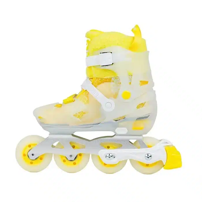 Flying Eagle S8 Pro Sprout Yuzu — это современная флагманская модель детских роликов, которая объединила в себе лучшие технические решения серии S7 и абсолютно уникальный дизайн. Яркий цвет Yuzu в сочетании с полупрозрачным пластиком ботинка и плюшевой отделкой лайнера делает эти ролики самыми заметными на любой роллер-трассе.