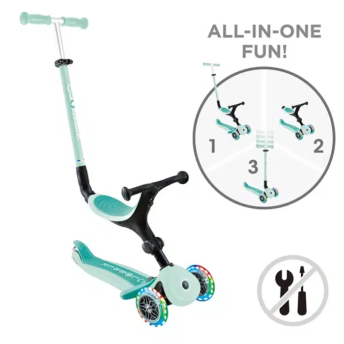 Детский самокат-трансформер Globber Go•Up Active Lights Mint (3-в-1)