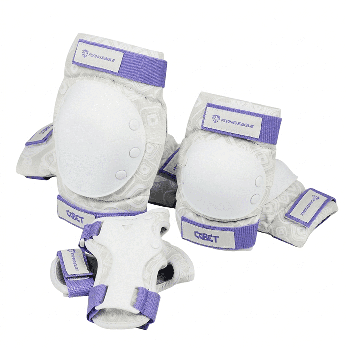 Flying Eagle Cobet White/Purple — это высококачественный набор экипировки, который сочетает в себе продвинутый уровень защиты и эффектный дизайн. Бело-фиолетовое исполнение делает этот комплект фаворитом среди девушек и подростков, обеспечивая не только безопасность, но и стильный вид во время катания.