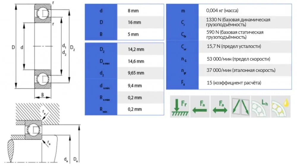 - Марка 688 имеет такой же внешний и внутренний диаметр в 8 мм, как и подшипники стандарта 608, но они более тонкие, что в 2,5 раза снижает их вес.