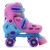 SFR Hurricane III – дитячі ролики квади в обновлённому дизайні з регульованим розміром. Жорсткий високий черевик відмінно фіксує ногу і підтримує гомілковостопний суглоб. Завдяки відсутності шнурків і двом Баклі черевики легко надягати і знімати. М’який і комфортний внутрішній черевик виконаний з урахуванням будови дитячої стопи. Просте регулювання розміру відбувається натисканням кнопки і розсуванням черевика до потрібного розміру. Однієї пари роликів вистачить дитині на кілька років.