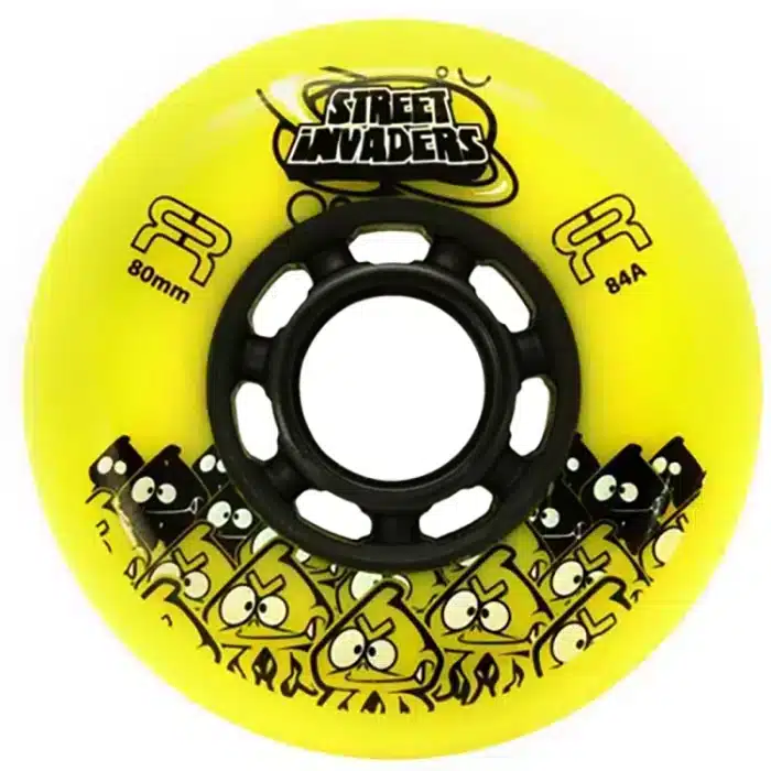 FR Street Invaders Yellow у соковитому неоновому жовтому кольорі — це вибір тих, хто хоче бути помітним. Ці колеса поєднують у собі екстремальний стиль та професійні характеристики, що стали світовим стандартом для фріскейту та слалому.