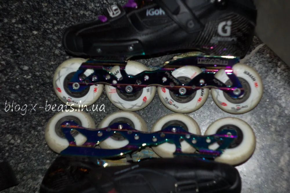 Колеса: Еще одно новшество в модели 2013 года как и во всей линейки роликов Seba 2013 это новые колеса Seba Street Inwader. Мясо стоит тоже самое то что и на колесах моделях Hyper Concrete & Create но увы ступица более хрупкая чем на прошлых моделях колес. В моем случае стоят колеса Hyper Creata + G в данном случае не имеет смысла про них ничего рассказывать