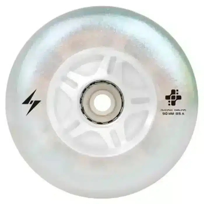 Micro Flash NEW Pearl — це високоякісні світні колеса, які активуються під час обертання. Унікальний перлинний відтінок поліуретану (Pearl) надає роликам стильного вигляду вдень та створює яскравий світловий потік вночі. Колеса доступні в діаметрах 76 мм та 80 мм, що дозволяє використовувати їх як на дитячих, так і на дорослих моделях роликів, а також для створення рокерингу.