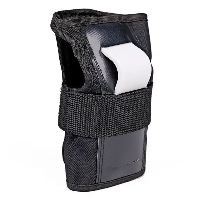 - Двойная защита: Конструкция оснащена двумя высокопрочными пластиковыми пластинами (сверху и снизу), которые жестко фиксируют запястье, предотвращая его опасный перегиб.